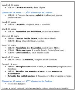 - Carême : du 18 février au 05 avril
