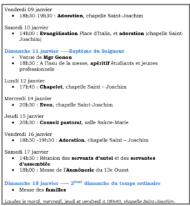 - Dimanche de la Parole de Dieu : dimanche 25 janvier
