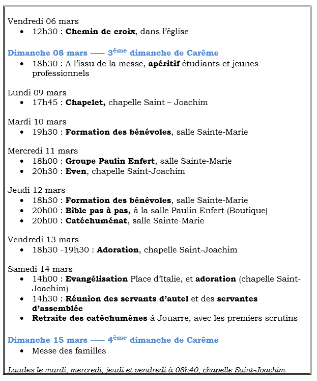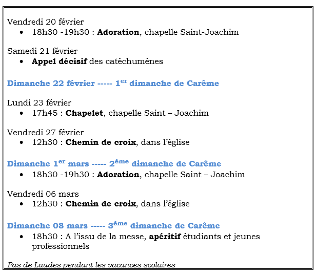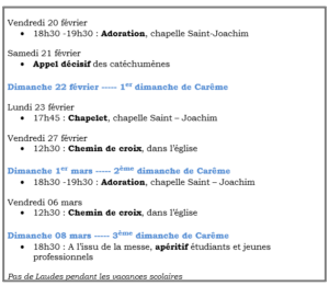 - Carême : du 18 février au 05 avril