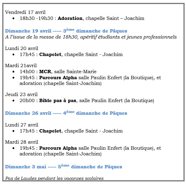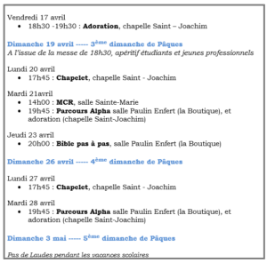 - Dimanche de la Divine Miséricorde : dimanche 12 avril