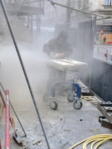 Pose d’un micropieu dans la Nef – Forage et évacuation des boues – 29 mars 2023