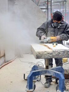 Début de la pose des marches escalier de la crypte – 05 mars 2026