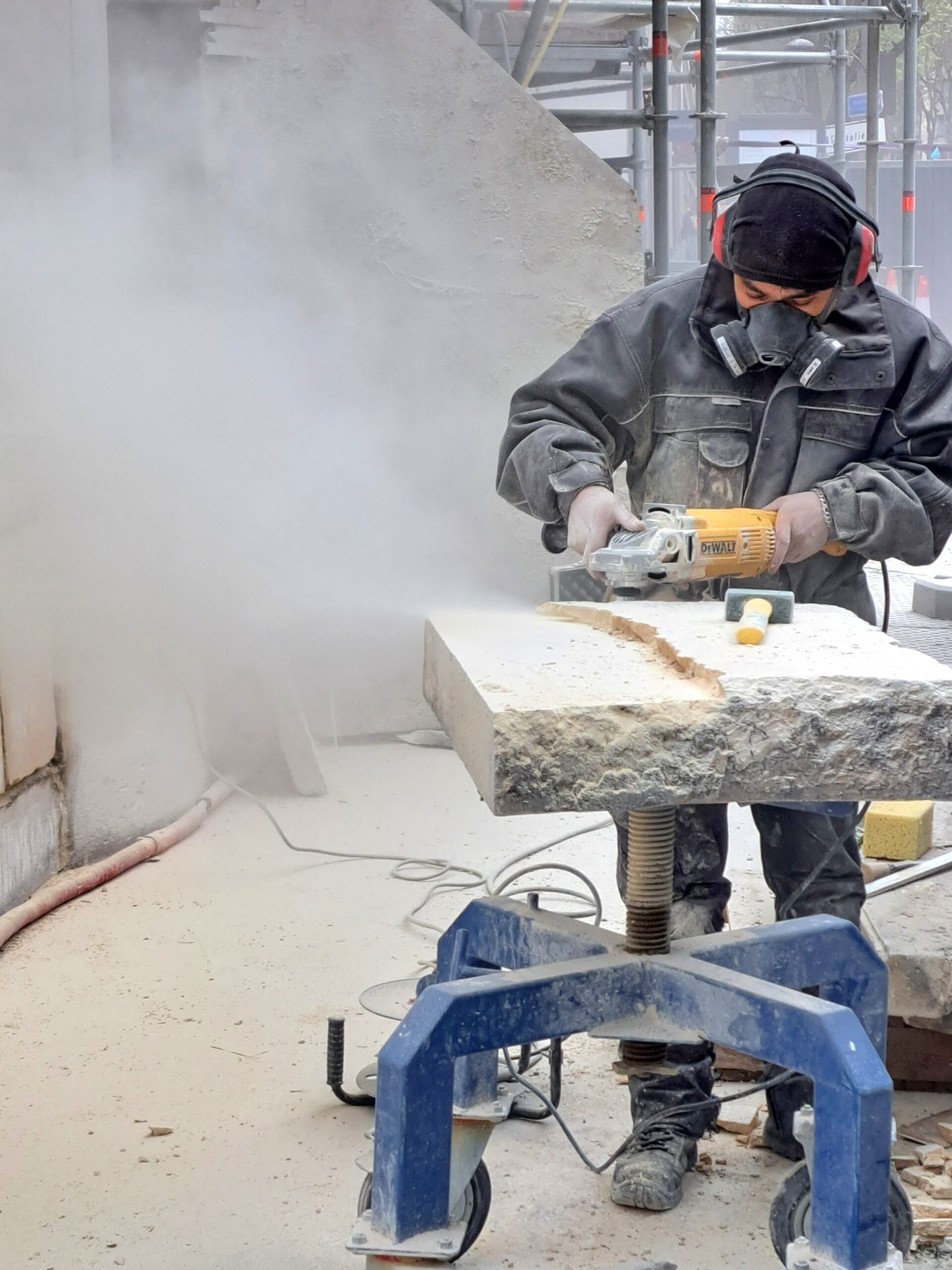 Sculptrice fignolant une pierre – 01 octobre 2025