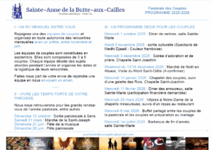 • Mercredi 06 mai 2026 : buffet partagé entre les couples de la pastorale et les couples en préparation au mariage